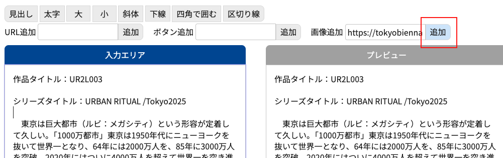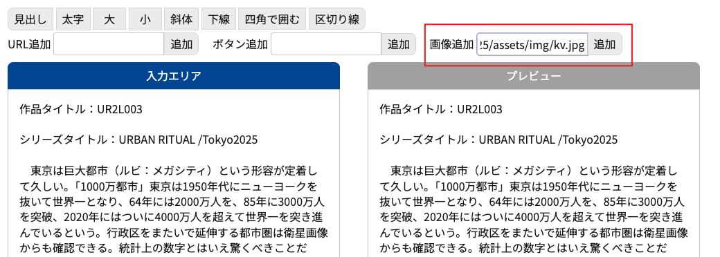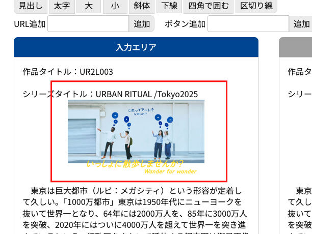 3.[入力エリア]内の画像を挿入したい場所クリック
