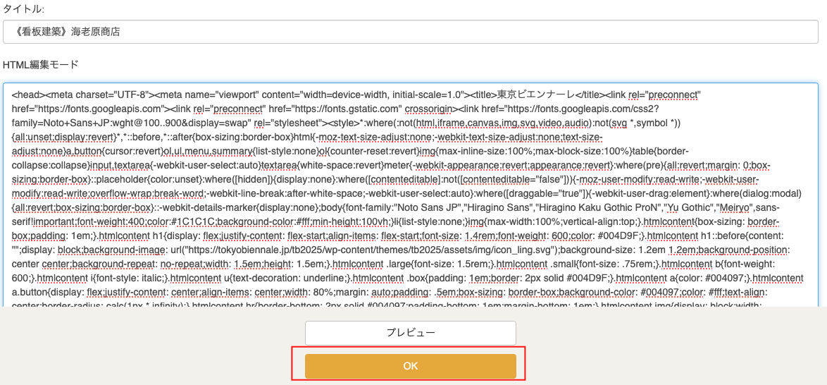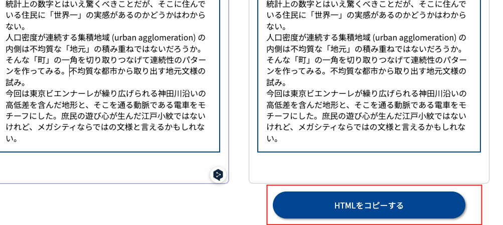 1.ページ下の[HTMLをコピーする]をクリックすると、