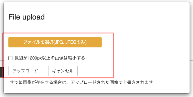 2.対象の画像ファイルを選択し、アップロードをクリック